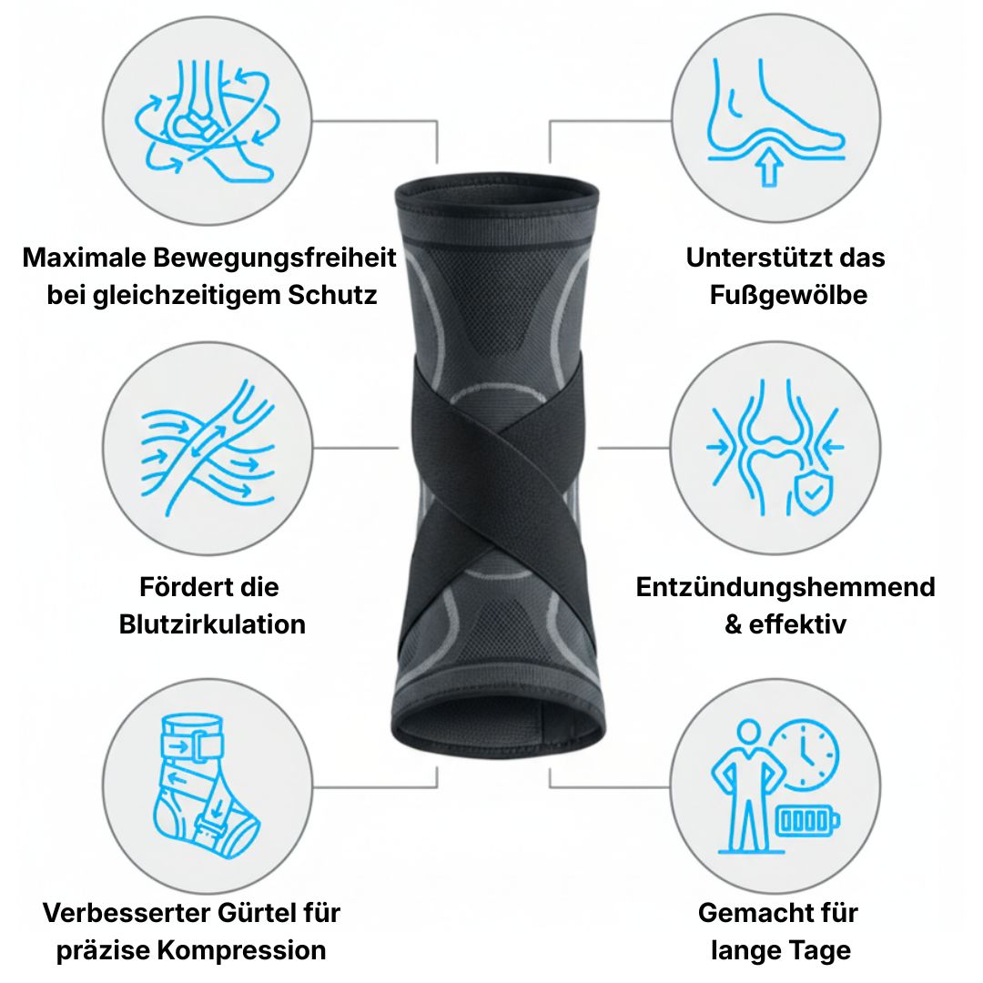 Gehe wieder sicher, ohne Angst und vor allem ohne Schmerzen. Einfach anziehen und deinem Fuß die professionelle Unterstützung geben, die er verdient.